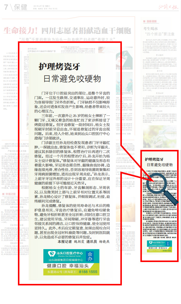 汕頭日報 | 護理烤瓷牙 日常避免咬硬物