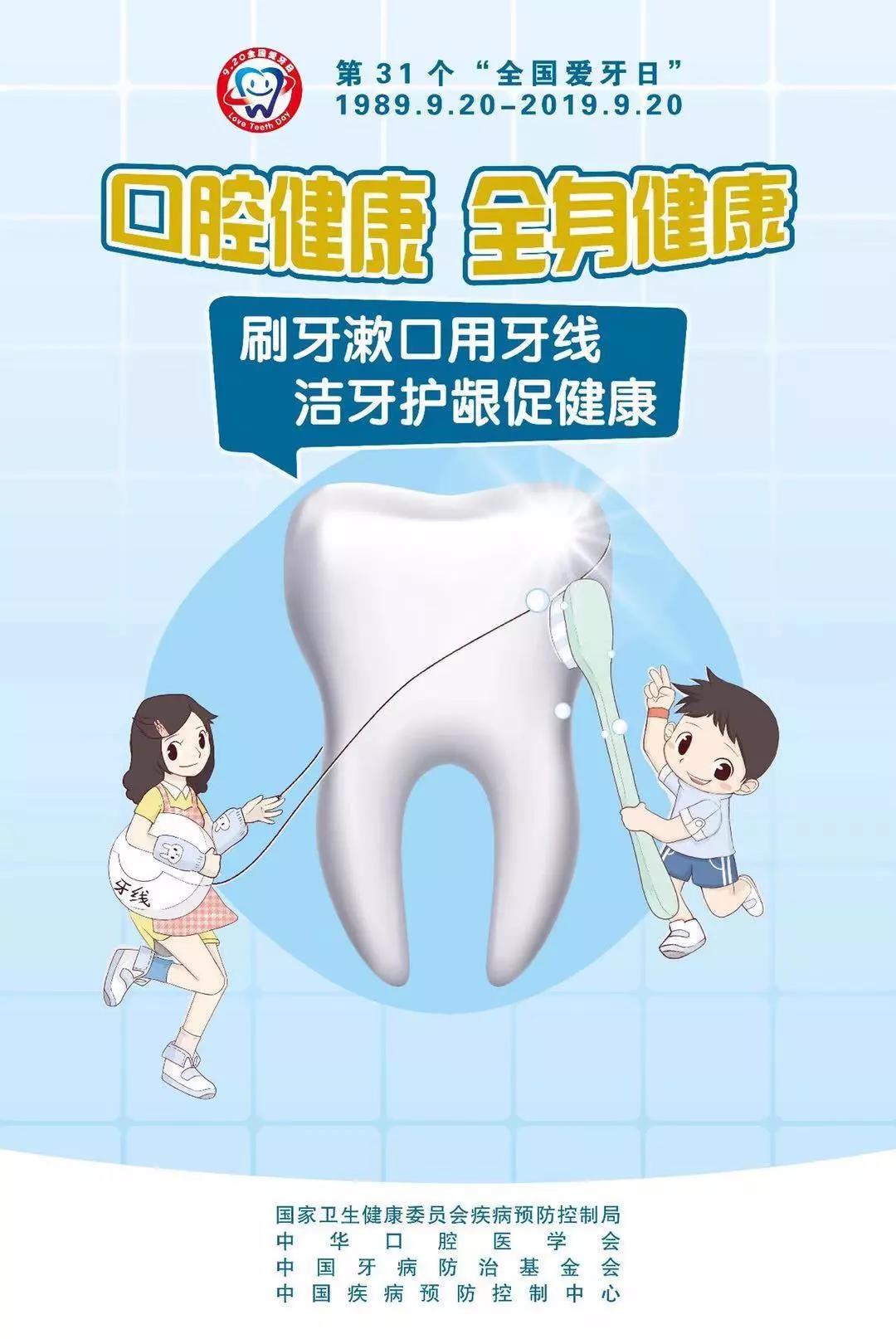 2019年9月20日是第31個(gè)“全國(guó)愛牙日”。近日,國(guó)家衛(wèi)生健康委疾控局發(fā)布了今年“全國(guó)愛牙日”活動(dòng)主題及相關(guān)安排,讓我們一起來具體了解一下。