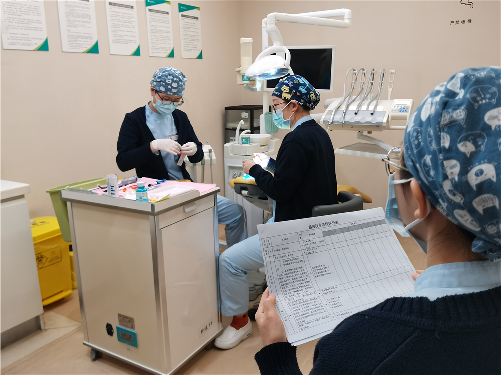 為了進(jìn)一步加強(qiáng)我院護(hù)理質(zhì)量和安全管理工作,保證我院護(hù)理質(zhì)量長期、可持續(xù)發(fā)展,加強(qiáng)護(hù)理隊伍內(nèi)涵建設(shè),提高護(hù)理人員的業(yè)務(wù)能力,近日,我院開展2021年度護(hù)理崗位定級考核??己瞬捎霉P試+實操相結(jié)合模式,考核內(nèi)容為口腔專業(yè)基礎(chǔ)知識及四手護(hù)士技術(shù)實操,由解超勇副院長、朱芳慧副院長等院領(lǐng)導(dǎo)及各科室負(fù)責(zé)人組成考核小組,對院本部及各分門診在職護(hù)理人員實行公開考評。