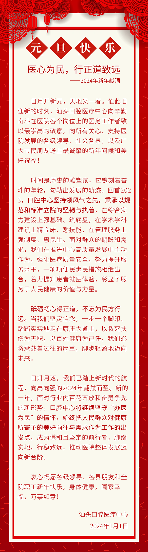 醫(yī)心為民,行正道致遠 | 2024新年獻詞