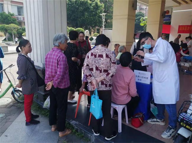 活動(dòng)現(xiàn)場(chǎng),醫(yī)護(hù)人員認(rèn)真檢查大家的口腔情況,幫助老年人免費(fèi)測(cè)量血壓。針對(duì)居民們出現(xiàn)的蛀牙、牙結(jié)石、缺牙等情況,醫(yī)生現(xiàn)場(chǎng)給出科學(xué)的診療建議,并通過(guò)牙齒模型指導(dǎo)他們正確的刷牙方法,并發(fā)放口腔健康指南等口腔衛(wèi)生保健資料,切實(shí)有效地提升了居民們的口腔保健意識(shí)。