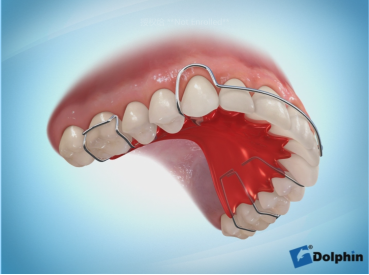 應用的時間較長,應用比較廣泛的一種保持器,由技工利用自凝塑料和彎制鋼絲完成,只部分包繞矯正之后的牙齒,對于牙齒保持效果良好。然而佩戴之后能夠看到前牙區(qū)的鋼絲,部分患者較為抗拒。此外,彎制的鋼絲被壓到時可能發(fā)生變形。